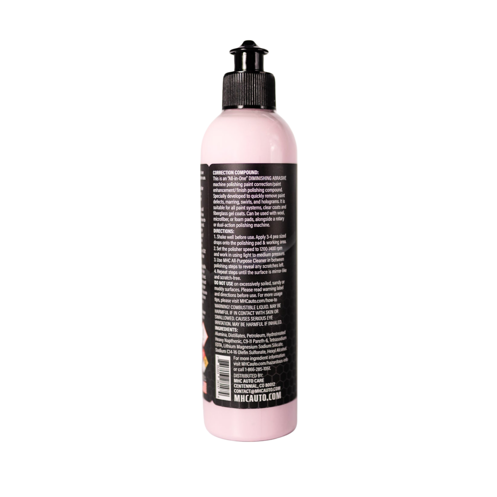 MHC Correction Compound is an “All-in-One” 1-Step diminishing and abrasive polishing compound. Specially developed to quickly remove paint defects, marring, swirls, and holograms, Correction Compound is suitable for all paint systems, clear coats and fiberglass gel coats. Can be used with wool, microfiber, or foam pads, alongside a rotary or dual-action polishing machine.