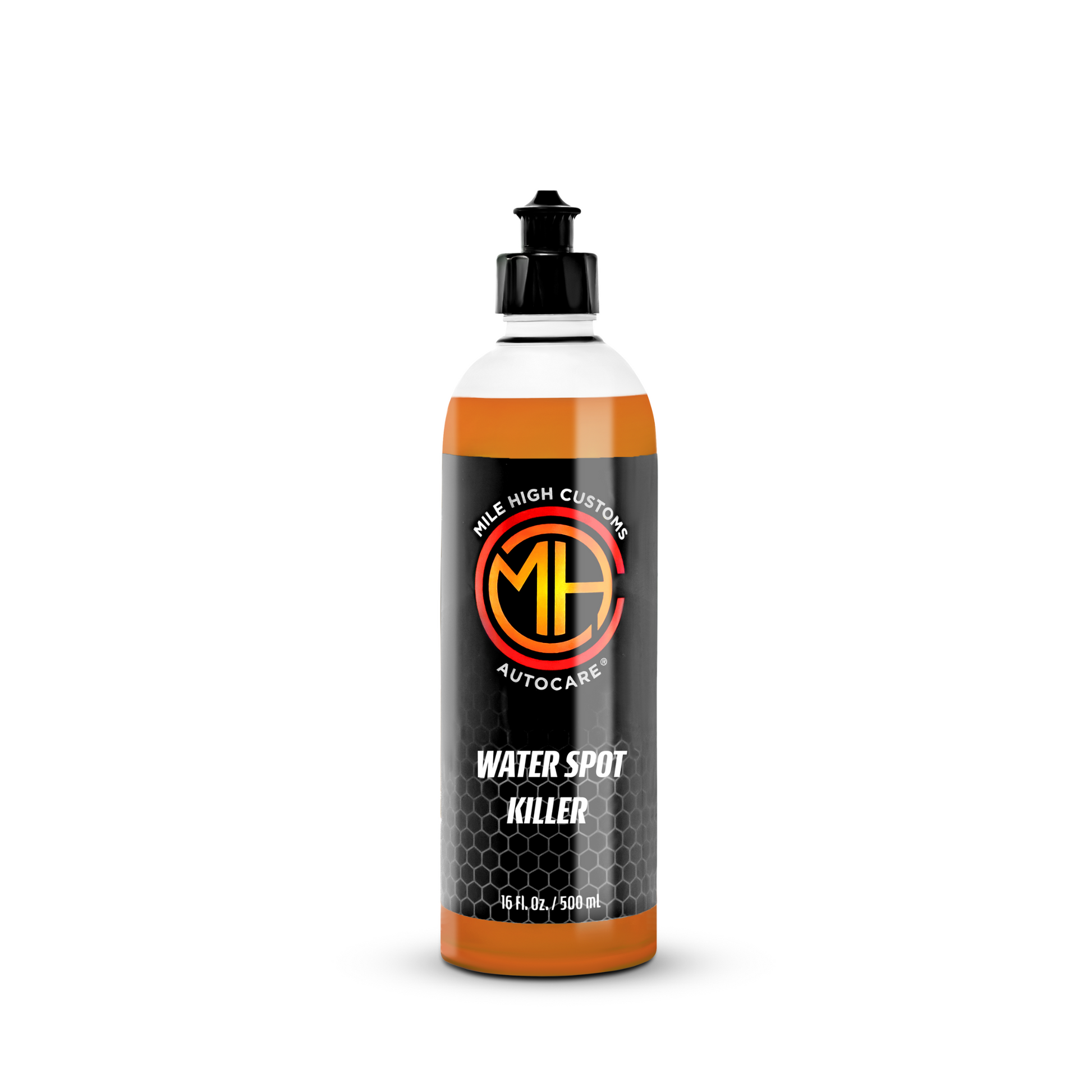 Water Spot Killer is a highly effective, mild acid based cleaner that acts as a stain, water spot remover, and wheel cleaner. Water Spot Killer easily removes calcium, mineral and fluoride deposits as well as rust from plastic, glass, painted surfaces and chrome. This spray-on cleaner can be used for car emblem restoration, paint decontamination and more! Experience the magic for yourself - Order your bottle of Water Spot Killer today.